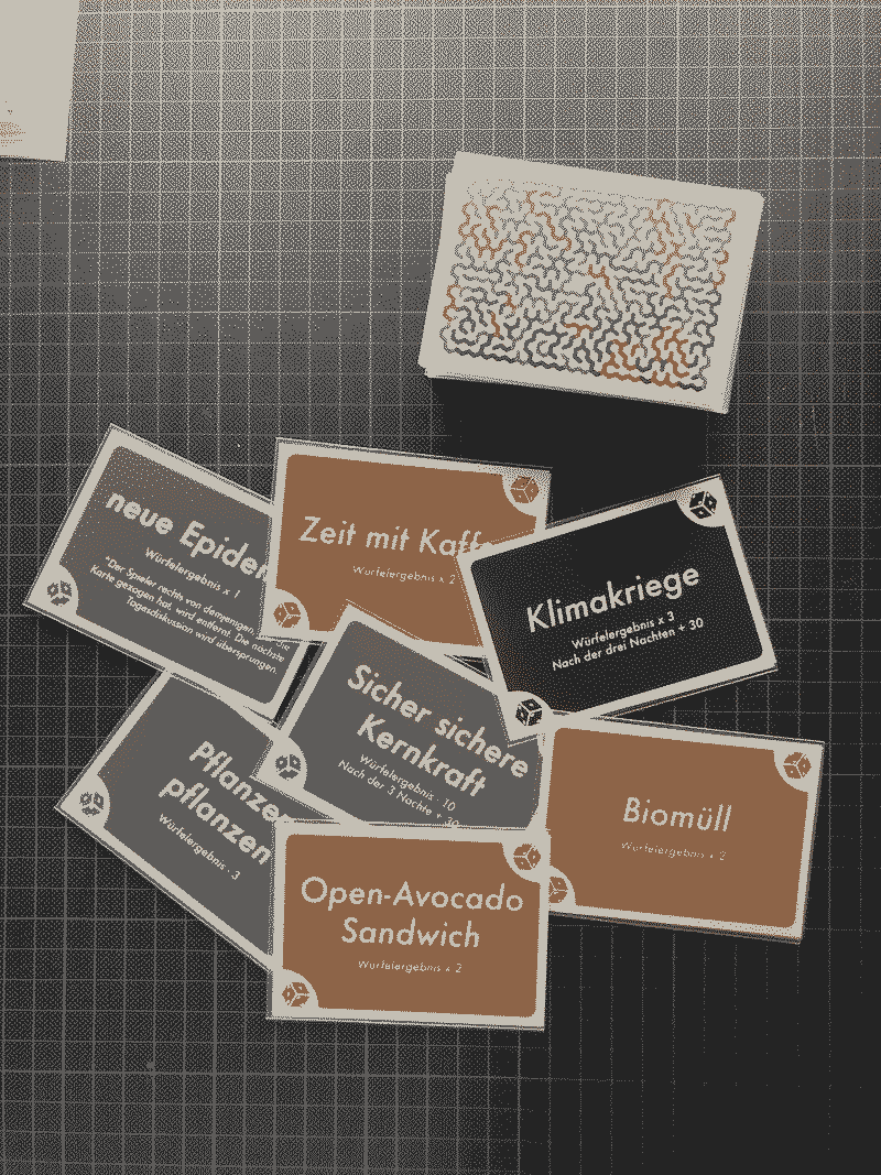 An action card is drawn. These cards show the dice color and any modifiers (increases or